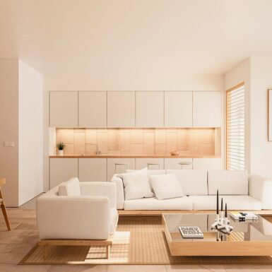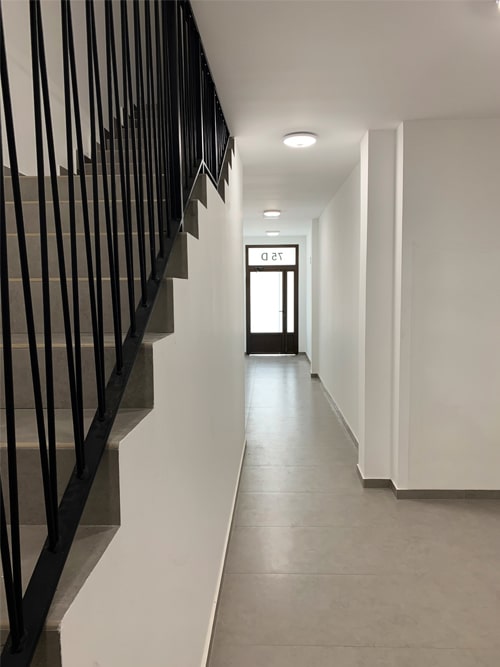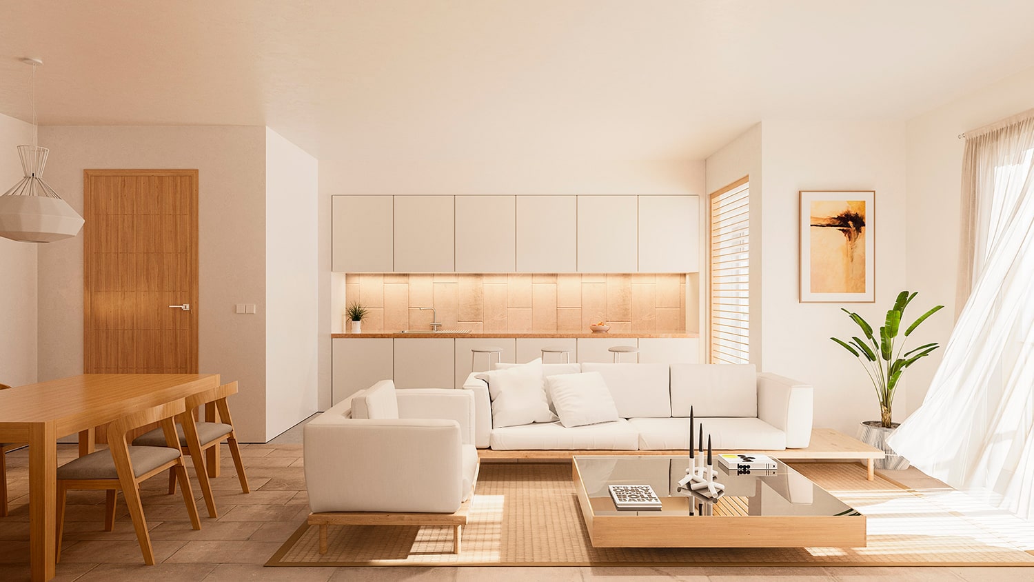 Las otras dos plantas están ocupadas por 6 viviendas diseñadas con un concepto abierto, en las que el salón se concibe como principal pieza de la vivienda, distribuyendo inteligentemente los espacios con la cocina y el recibidor. Un diseño que puede ser especialmente atractivo para personas que vivan solas o para parejas.