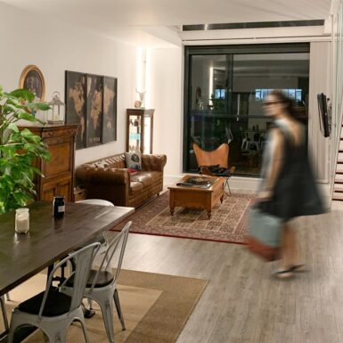 Ubicado en un céntrico y popular barrio madrileño, donde las opciones inmobiliarias escasean o presentan en general un concepto mucho más tradicional, el cambio de uso de esta oficina ha permitido a sus nuevos propietarios disfrutar de las comodidades de una vivienda funcional y moderna, sin alejarse del centro de la ciudad.