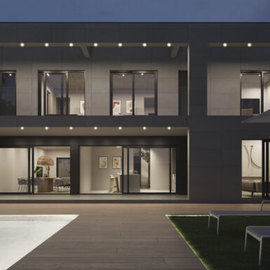 La piscina se convierte en un elemento central en el jardín interior, ya que debido a las particularidades de la parcela ha sido posible su ejecución con grandes dimensiones.